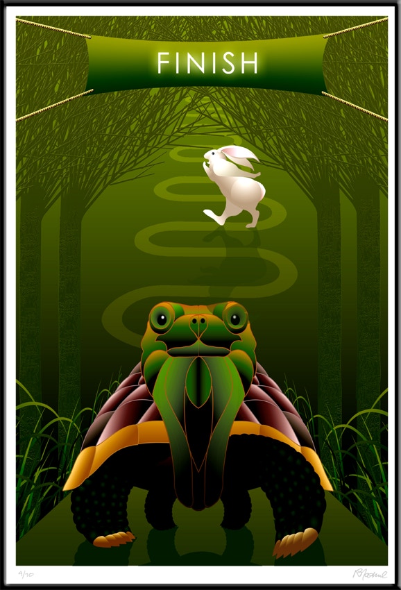 Original The Tortoise & the Hare print, signed and numbered by the artist with white boarder and certificate of authenticity.