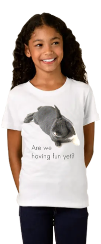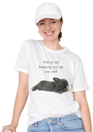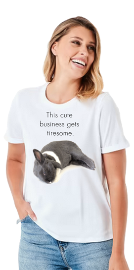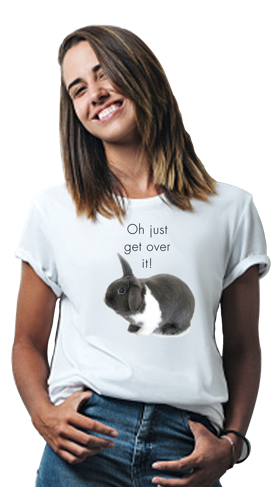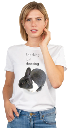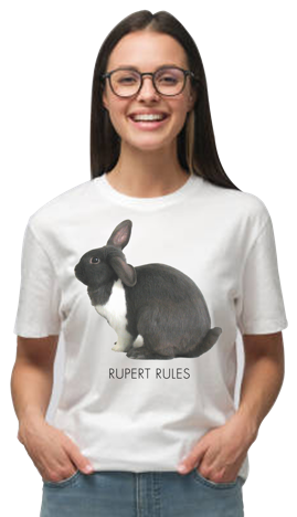 It’s been said that Rupert, the world’s most expressive rougous (rabbit in your language) can silence a room full of people with just one glancing stare. The Rupert shirt collection explores some of this bunny’s more profound utterances . . . words that will cause you to rise from the floor, dust yourself off and carefully consider what you say next.