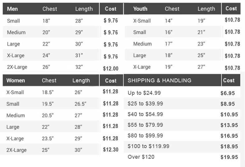 • Your specific size (XS, S, M, L, XL, 2XL,)